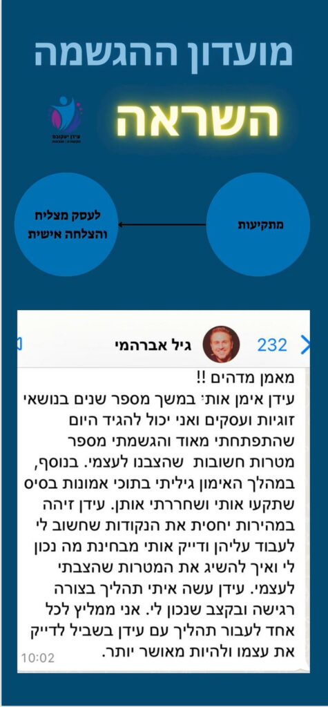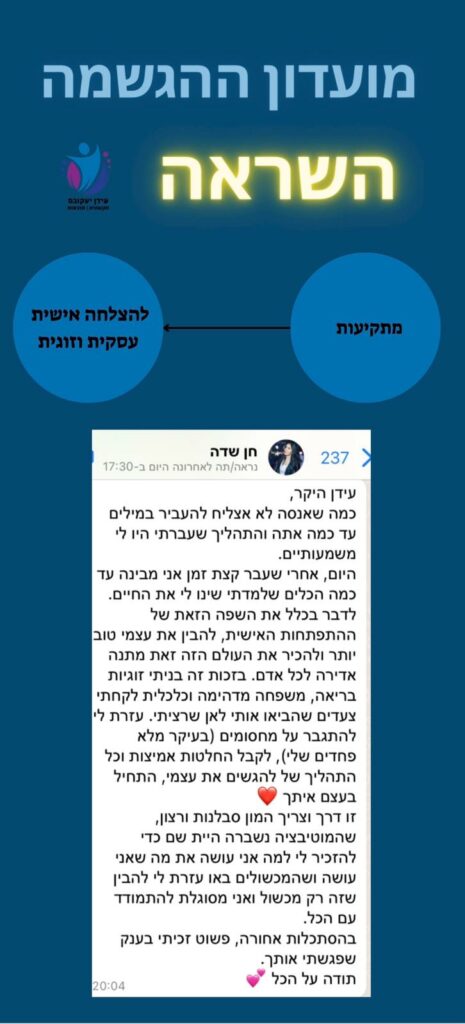👉 שאתם מתקדמים בקריירה ובחיים האישיים מתוך בהירות, עוצמה והגשמה.