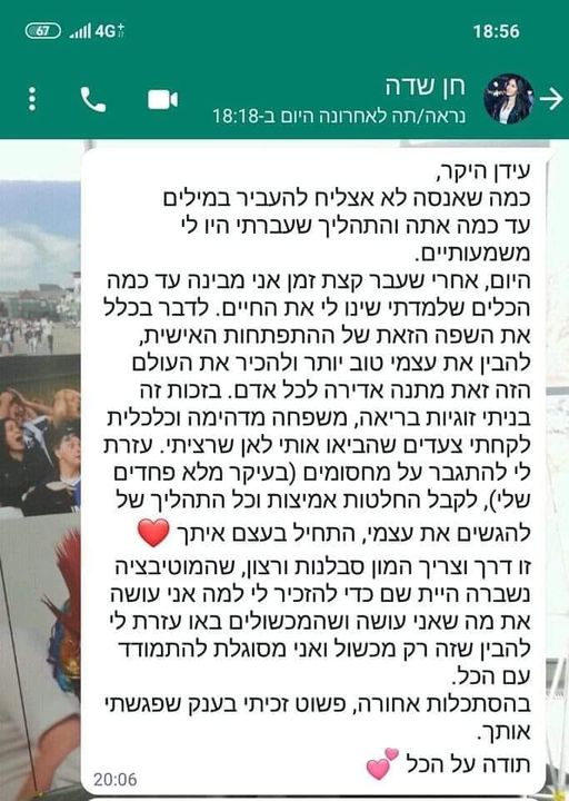 בגיל בוגר החליט לעשות שינוי. בלי לימודים ורקע מזהיר, החליט לעשות תואר באוניברסיטה וליצור שינוי. תוך זמן קצר השלים בגרויות ויצא אל הדרך.